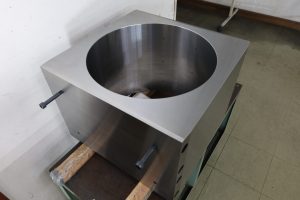 本製品は産業機械の中でプレス機械の内部に組み込まれる部品(部品名:スライド)です。材質はSKD61、サイズは縦490[mm]×横480[mm]×高さ350[mm]、φ400[mm]+0.01~+0.036となっております […]