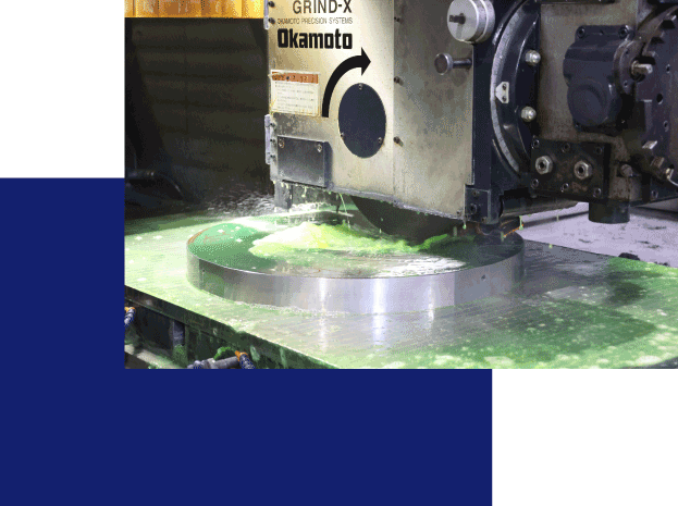 特に、部品加工に用いられる治工具の製造において、治工具の精度が部品の精度に直結するため、高い精度と耐久性に寄与する表面品質を維持するために、研削加工用の設備を充実させております。平面・円筒・内面研削盤をはじめ、高精度の複合研削加工を可能とするCNC研削盤まで、計14台の研削盤を保有しており、研削加工単品の受注も可能です。